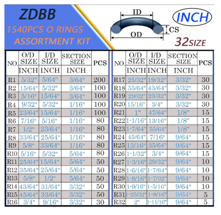 419 Pieces Metric Universal ORing Kit, Set of 32 Metric Sizes, Buna-N 70A, Rubbe